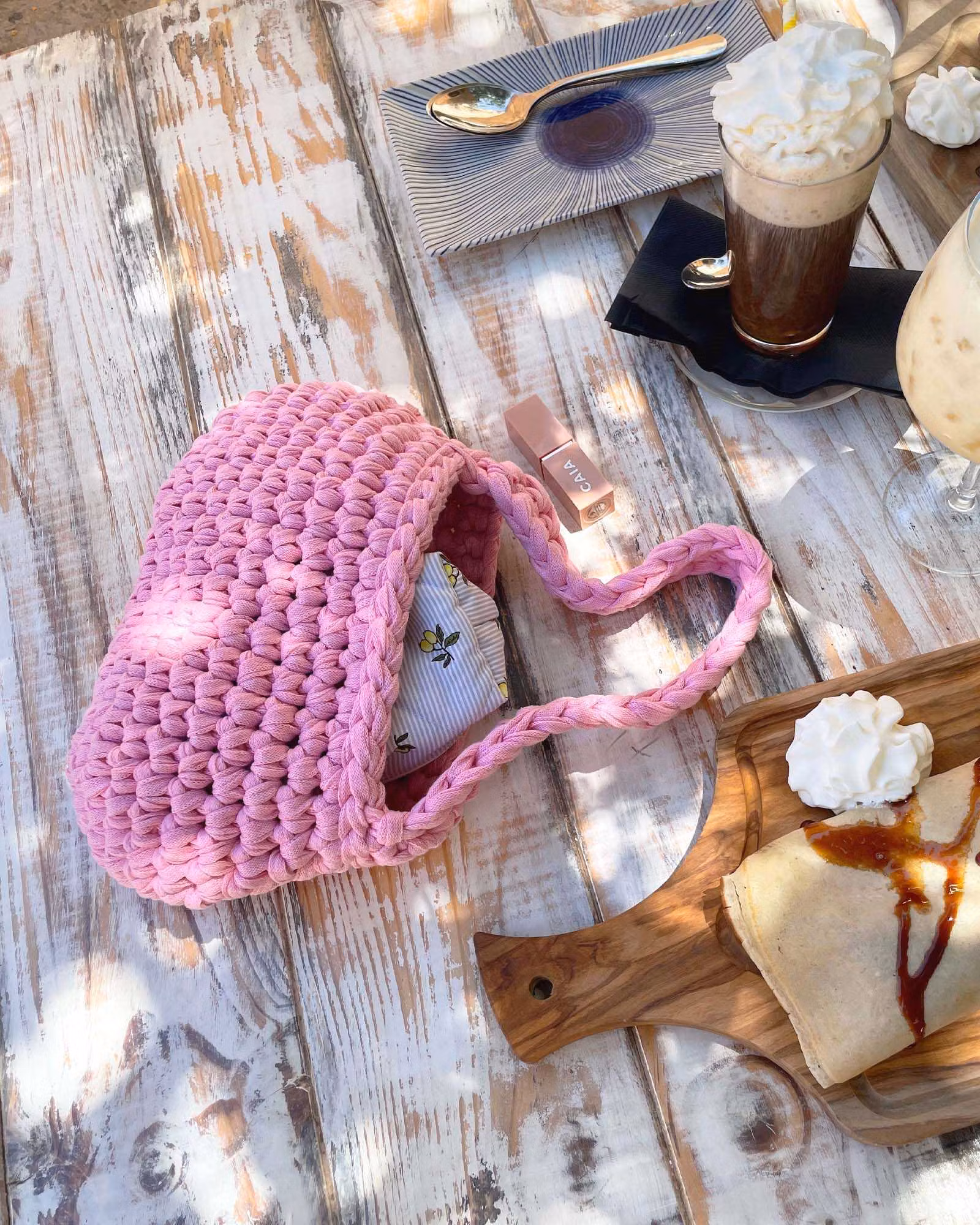 studio donnah's crocheted bags are handmade and comes in many different models and colors. The bags are unique and made in a limited edition. This is not a made to order item, all bags are finished and ready to ship. Because the bags are crocheted in many different yarn varieties, they have different weights, colors and shapes. For example, a pink color is not exactly the same pink on every bag ♥