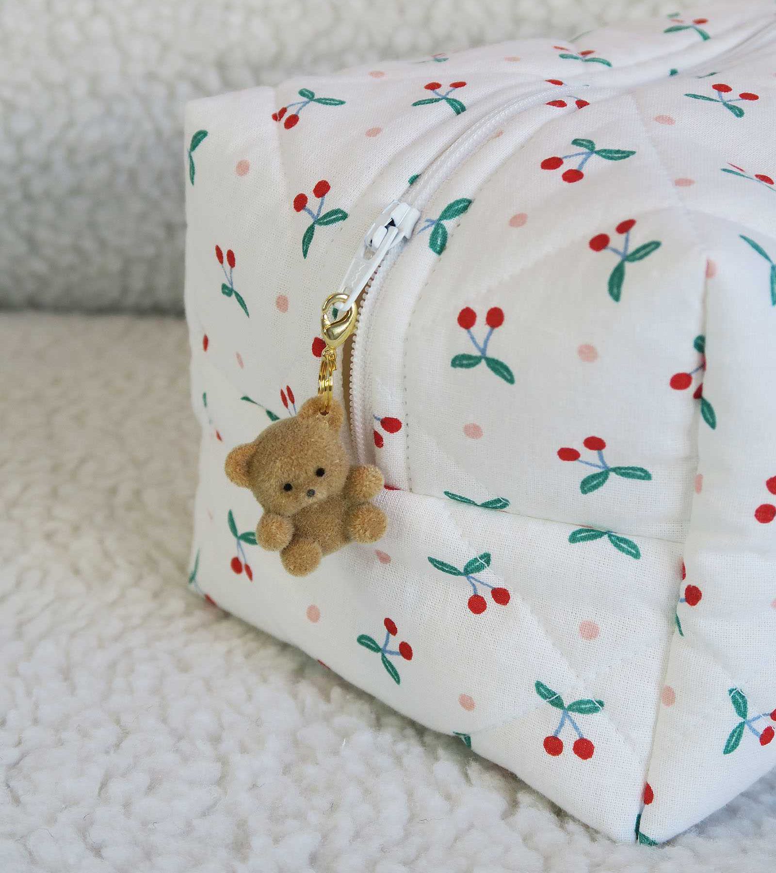 Mr Teddy charm är en berlock i form av en liten fluffig teddybjörn. En lekfull detalj som sätter en personlig touch på din necessär, fodral eller väska.