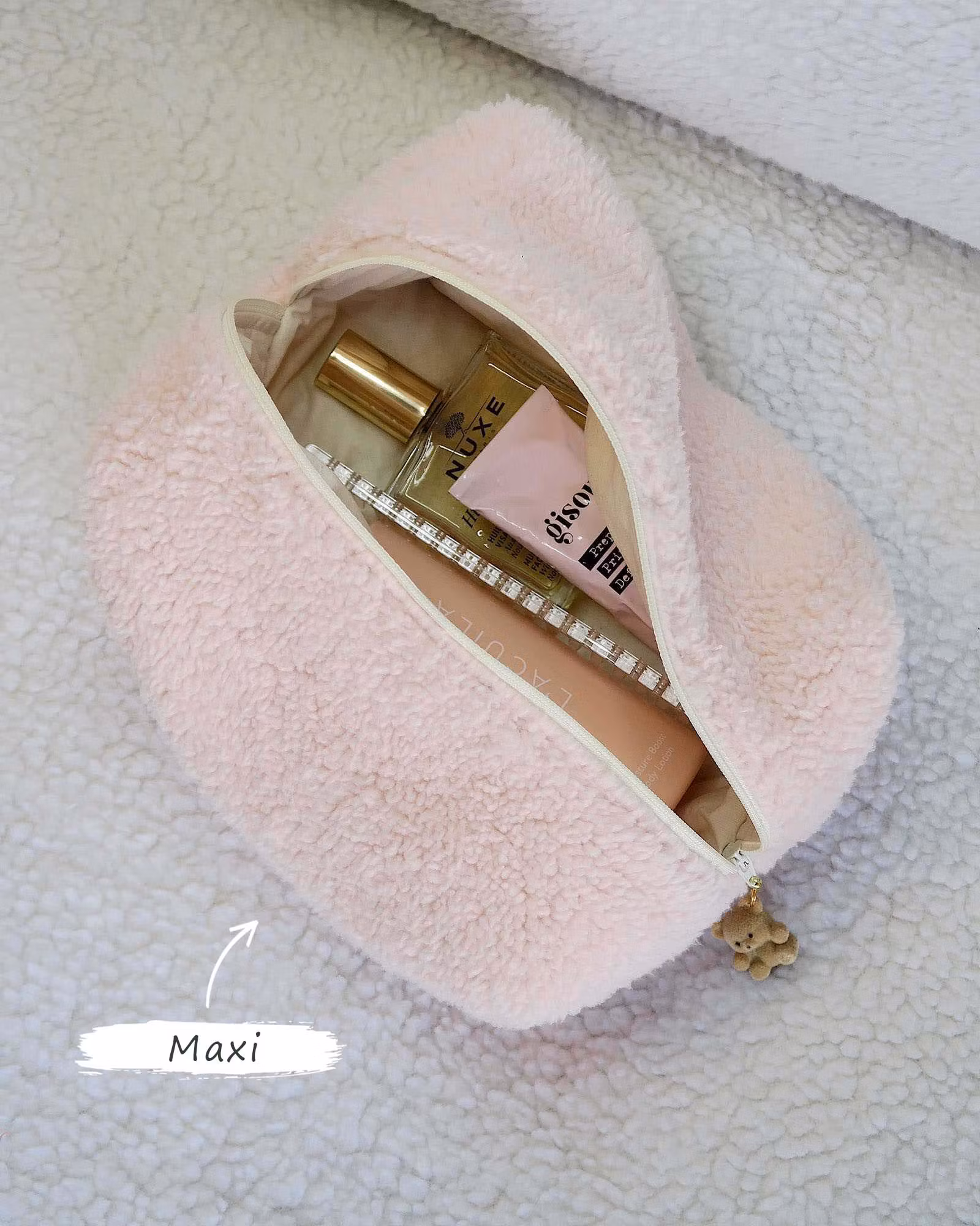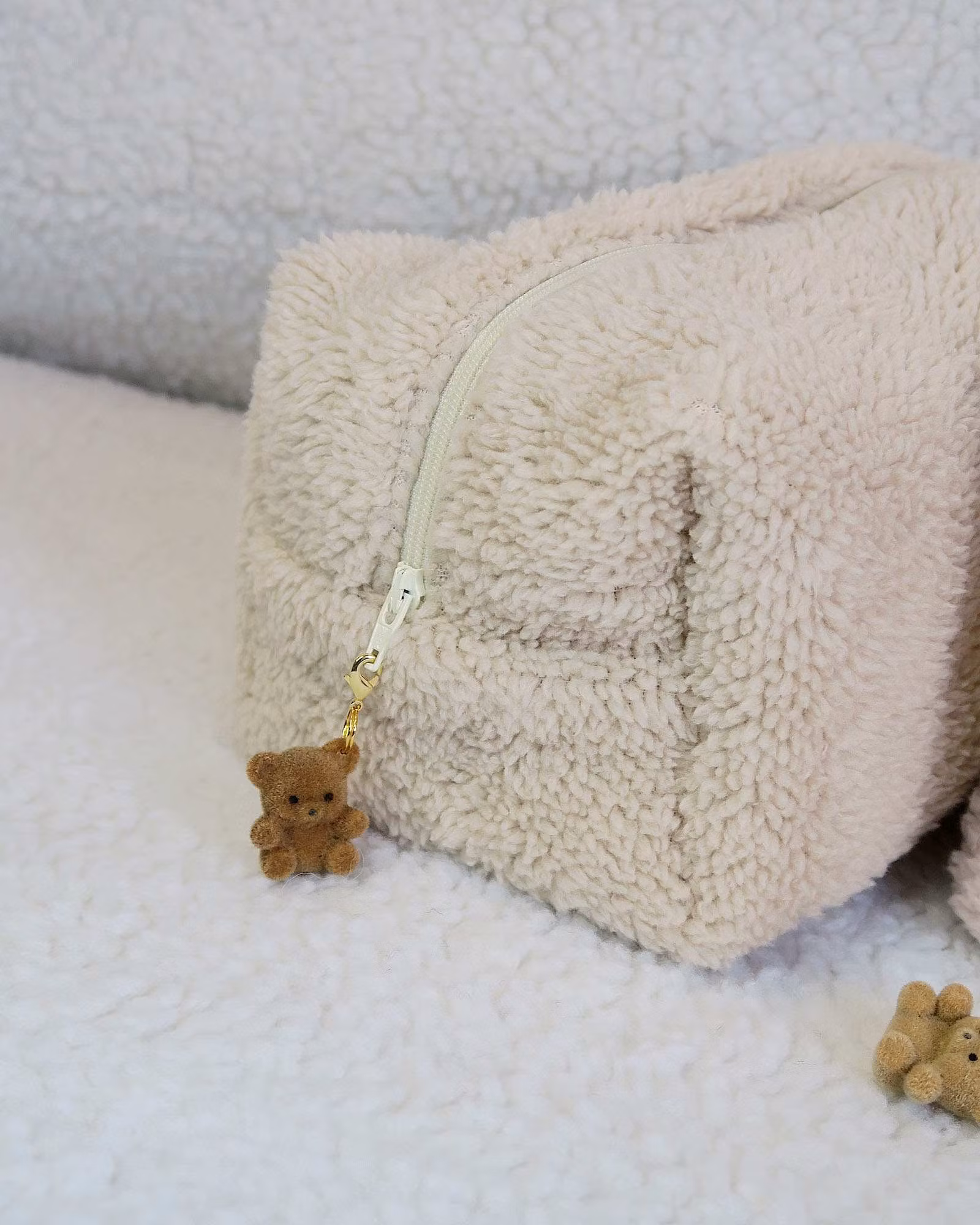Teddy pouch är en fluffig, mjuk necessär i teddytyg som har en söt Mr-Teddy-berlock i dragkedjan. Teddy pouchen finns i ljusbeige och ljusrosa. De har matchande dragkedjor och Solid cream som innertyg. Mr Teddy finns i färgerna - Brownie och Caramel. Kontakta mig om du vill beställa ett laptopfodral med den här designen.